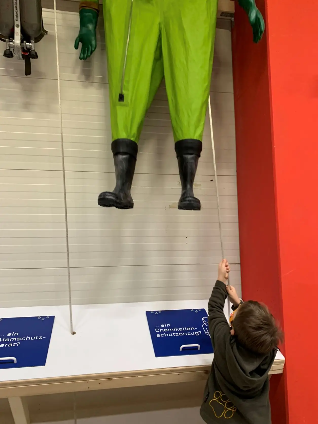 Dazwischen schließen wir familieninterne Wetten ab: Was wiegt eigentlich ein Feuerwehrstiefel? Wir testen und schätzen und liegen voll daneben.