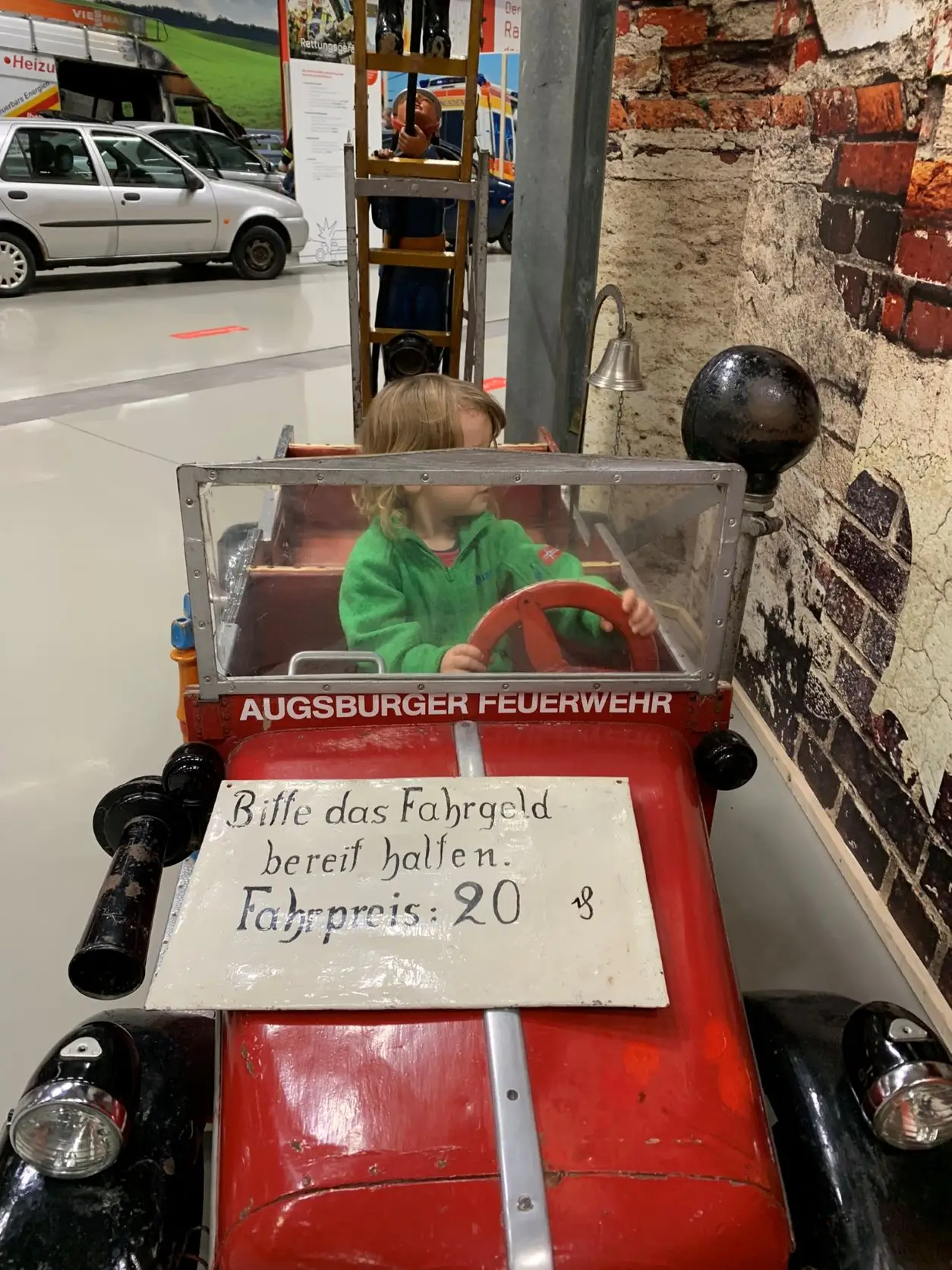 Kinder sind herzlich willkommen in der Augsburger Feuerwehrerlebniswelt. Die Mitarbeiterinnen und Mitarbeiter sind sehr kinderfreundlich und auch viele Bereiche sind kindgerecht gestaltet. Da gibt es zum Beispiel für die Kleinen eine Bobby Car-Erlebnis-Rennstrecke – natürlich als Notfallfahrzeug unterwegs!