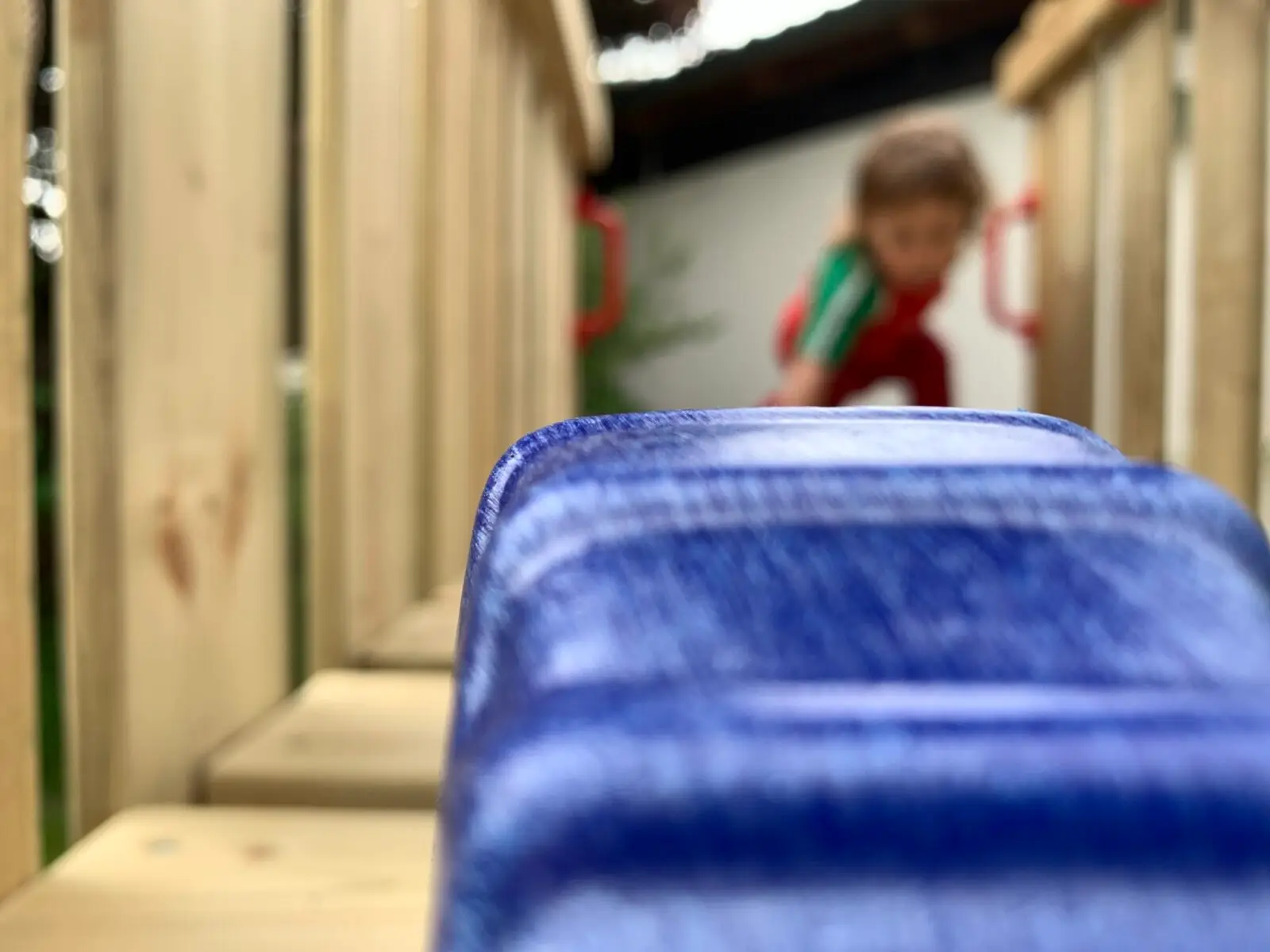 Erinnert mich an meine Kindheit, aber wieder modern. An der Sprossenwand können die Kids klettern oder Krafttraining machen. Je nach Alter unterstützt ihr – wie wäre es mit einem kleinen Wettbewerb, wer mehr Klimmzüge schafft?
