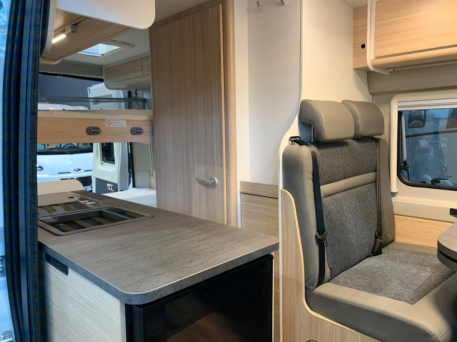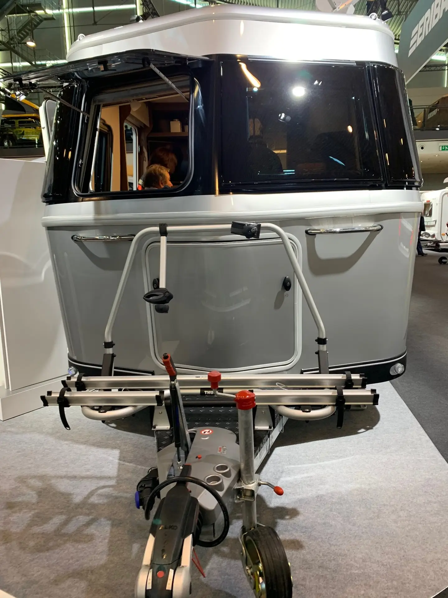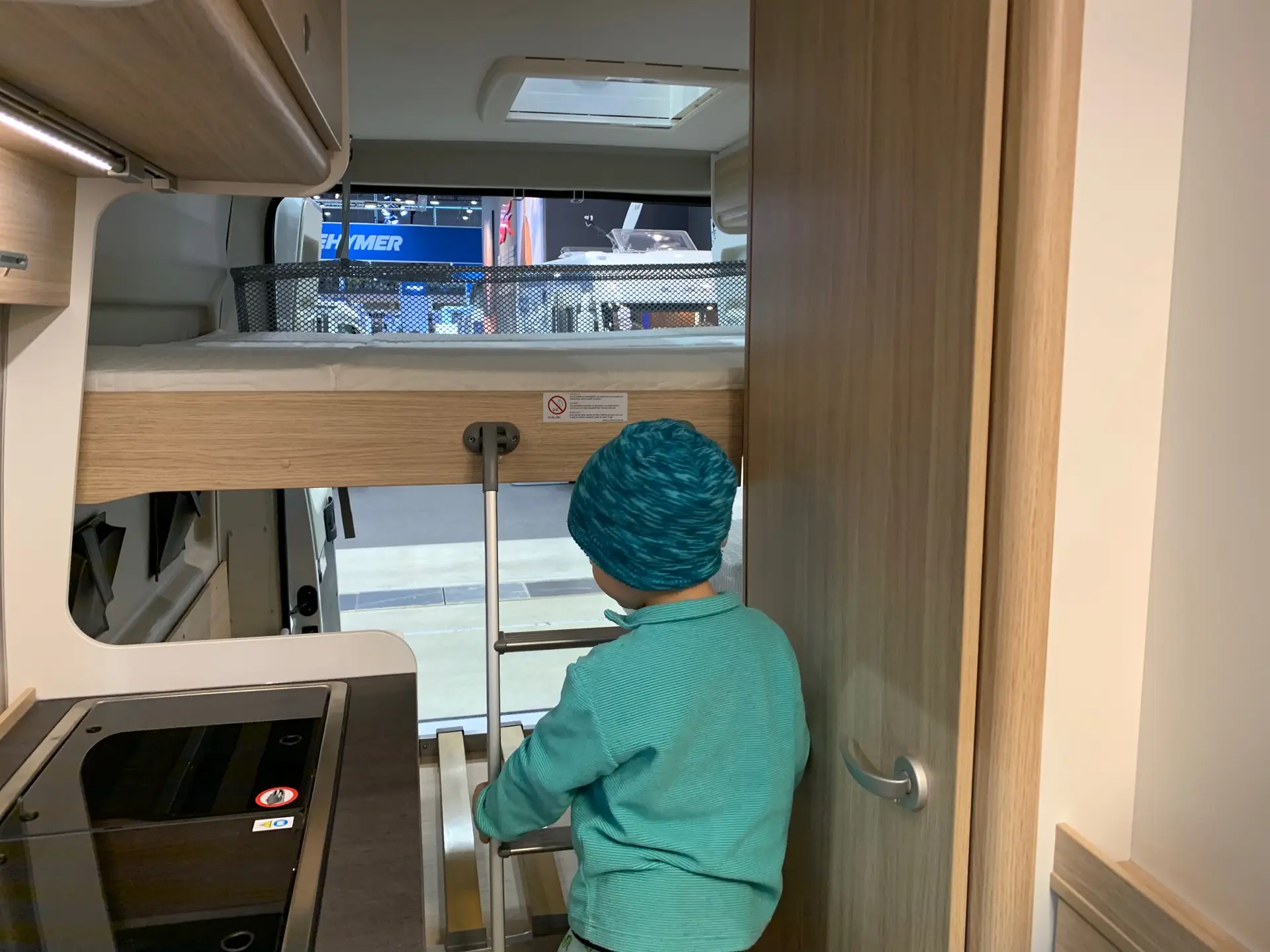 Wir testen uns durch Ford Nugget (Titelbild), VW und Mercedes, durch Trucks, Vollintegrierte, Pössl und Weinsberger, bestaunen Dachzelte, nerven Verkäufer mit Detailfragen und Fotos machen für Instagram und wandern zurück in Halle 1. Die Laune sinkt. Ein Blick auf die Uhr: Abendessen! Wir finden Essen mit Aussicht, lassen das Baby über den Boden krabbeln während der Sohn selig Saitenwürstle mit Linsen und Spätzle schlemmt. Das Baby lutscht das Stuhlbein ab, ich achte penibel darauf, dass es sich den Kopf nicht stößt. Mit Kind zwei wirst ja automatisch entspannter. Dir bleibt ja auch nichts anderes übrig, oder du wirst verrückt.