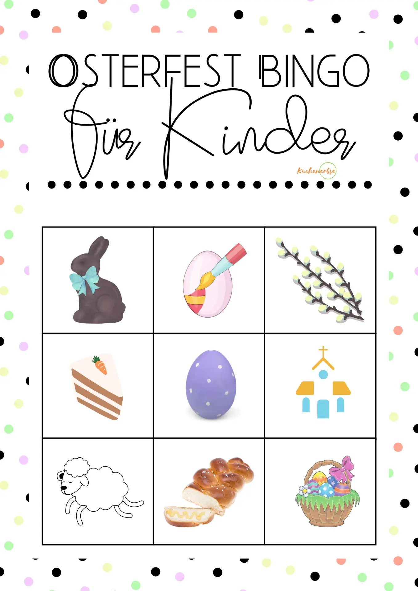 Ich gebe es zu, mit minus sechs Grad Außentemperatur und Schneelawinen vom Dach denkt man nicht zuerst an Ostern. Aber nun ja, für etwas Osterstimmung bei den Kindern soll ein kleines Oster-Bingo sorgen. Für das große Amüsement bekommen auch die Großeltern beim Osterbrunch die Aufgabe, das Oster-Bingo schnellstmöglich zu lösen.