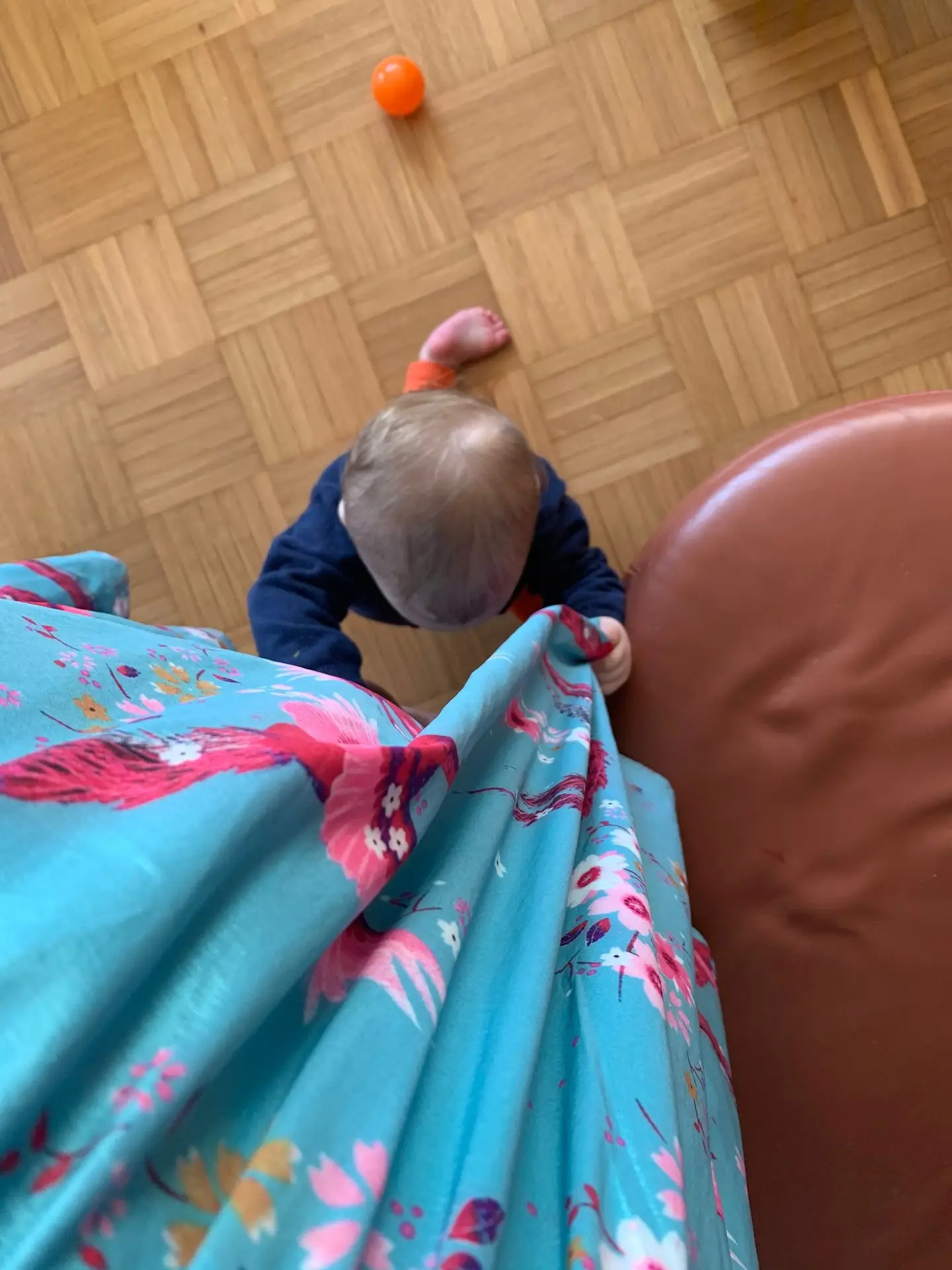 Mein Wortschatz hat sich dagegen minimiert, ich bin ja pragmatisch. Meist hört ihr hier nur noch „NO! NO, nonononono!“ oder „Nein!“ oder „lass gefälligst die Krümel am Boden liegen“ zusammen mit „steck das ja nicht in den Mund!“ bis zu „Nicht die Spinne essen!“. Wobei sich eine gewisse Dankbarkeit einschleicht, dass das Kind NICHT einfach alles isst. Dafür ist nur das Baby zuständig. So ein Glück. Das Gemüse wird halt püriert und als Suppe verkauft. Wird zumindest nicht hinterfragt.