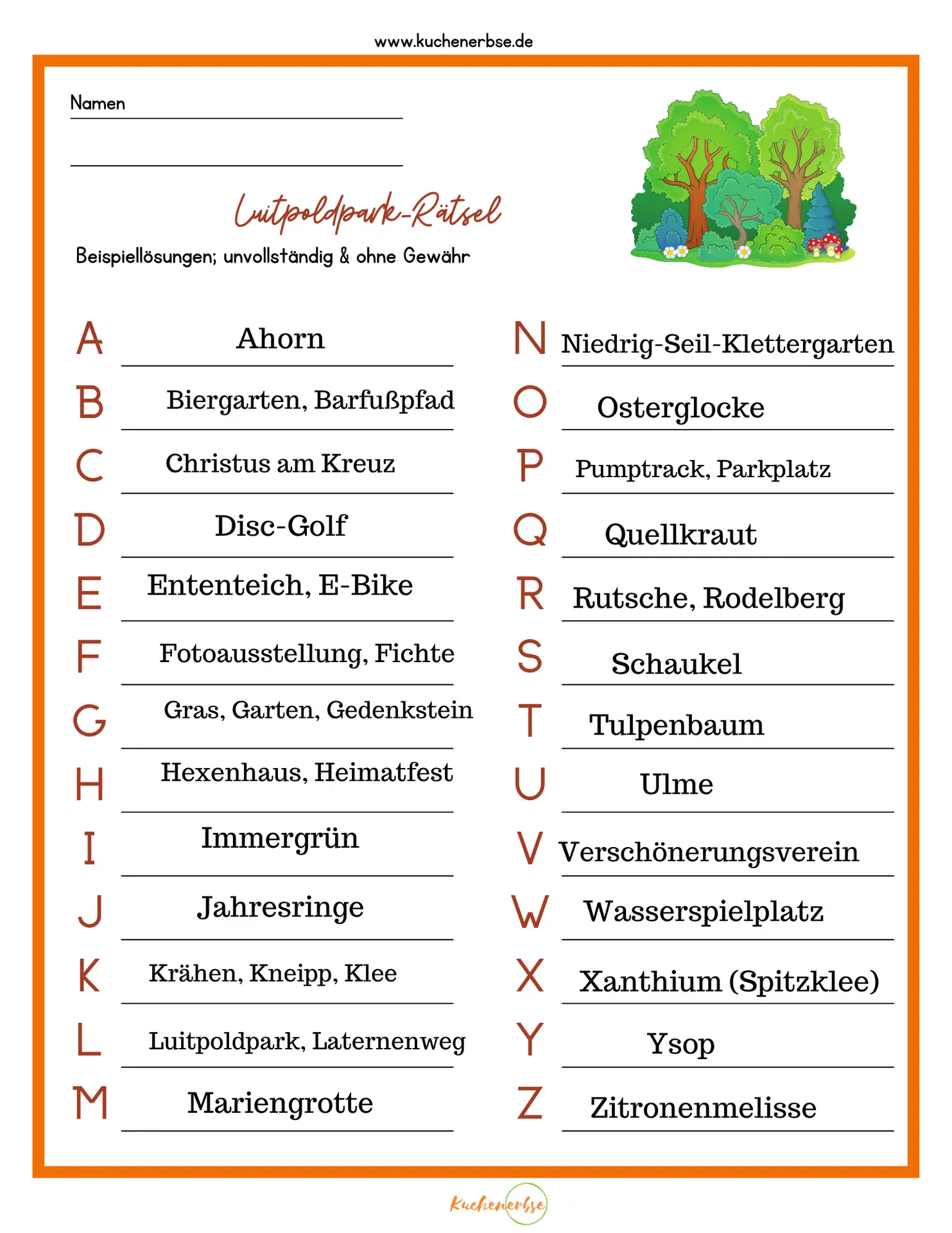 Luitpoldpark erleben mit dem Kinderquiz A-Z